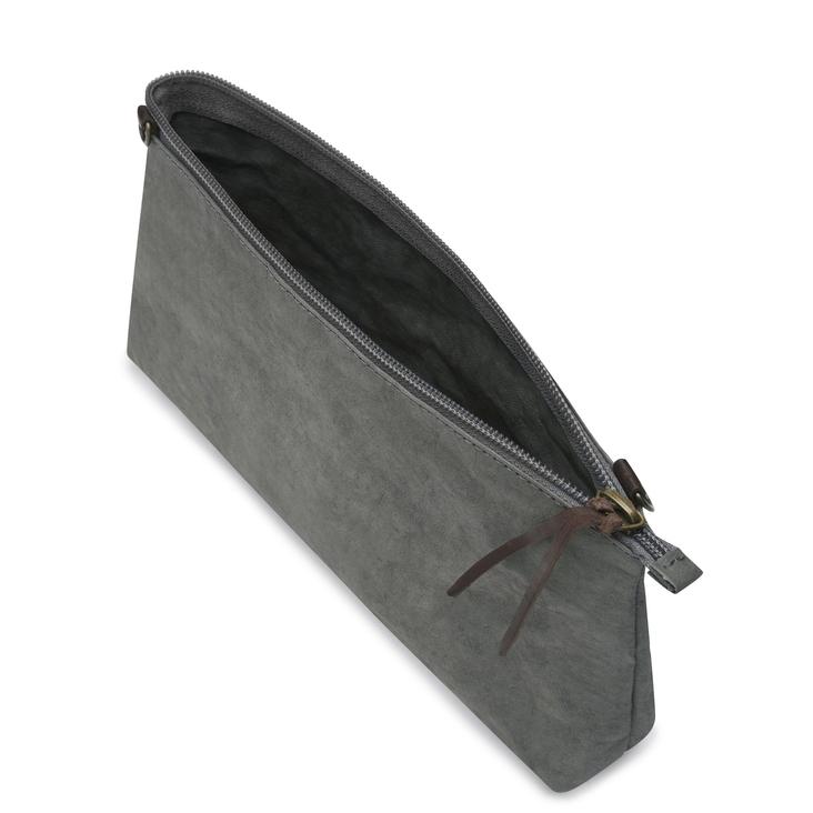 Mit einem feinen abnehmbaren und verstellbaren Lederriemen kann die Papiertasche als Handtasche getragen oder der Riemen abgenommen und als Clutch verwendet werden.