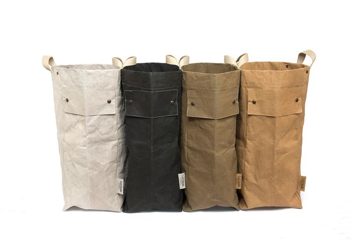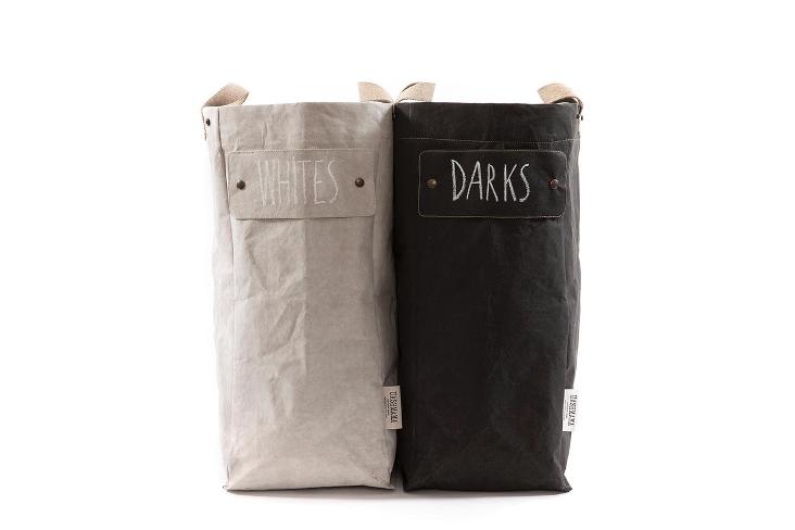 Kluges Sack-System der Wäscheaufbewahrung/trennung. Jeder Sack ist mit Druckknöpfen ausgestattet damit die einzelnen Säcke zusammengefügt werden können. Abnehmbare Etikette für Beschriftung, Farbe, Inhalt etc.